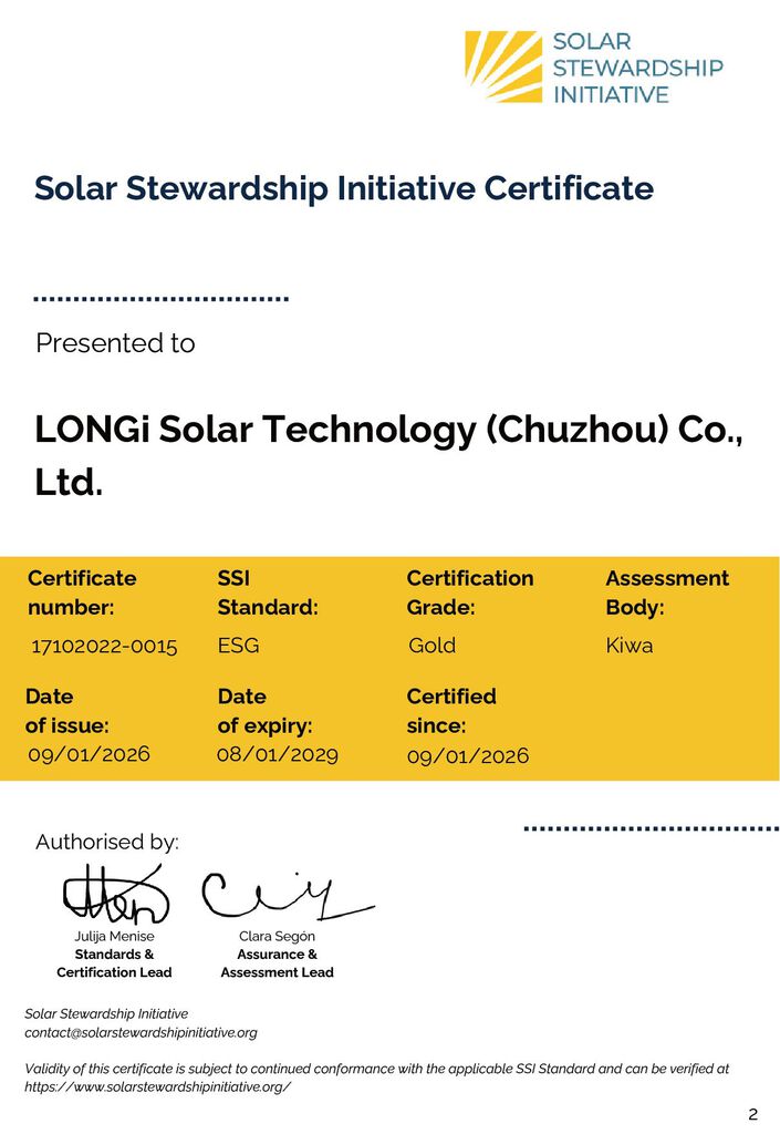 LONGiの滁州基地は、Solar Stewardship Initiative(SSI)が実施するESG監査において、世界の太陽光発電業界で初めて最高等級認証を取得した製造拠点となりました。