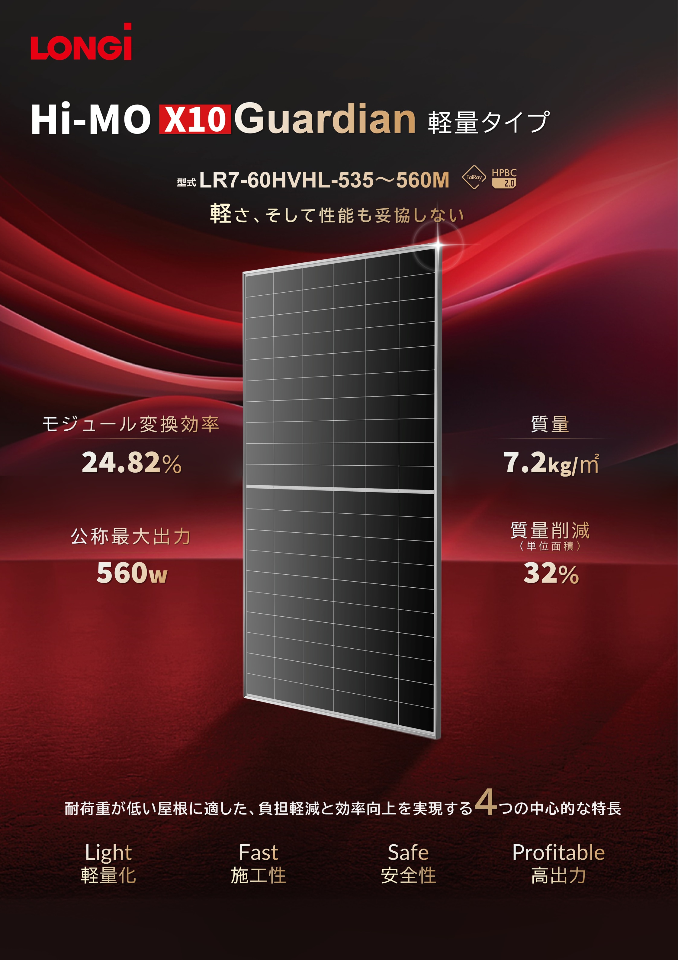 HPBC 2.0技術により、1㎡あたり248Wの高出力を実現しています。